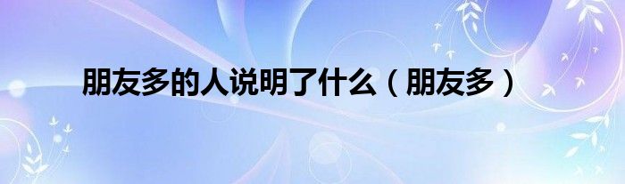 大家好,小问来为大家解答以上问题。朋友多的人说明了什么,朋友多这个很多人还不知道,现在让我们一起来看看吧!