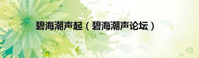 碧海潮声起(碧海潮声论坛)