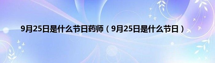 大家好,小问来为大家解答以上问题。9月25日是什么节日药师,9月25日是什么节日这个很多人还不知道,现在让我们一起来看看吧!