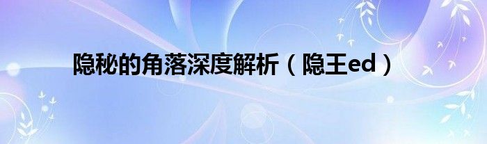 大家好,小问来为大家解答以上问题。隐秘的角落深度解析,隐王ed这个很多人还不知道,现在让我们一起来看看吧!