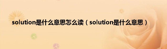 以上就是【solution是什么意思怎么读,solution是什么意思】相关内容。