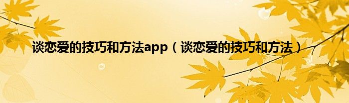 大家好,小问来为大家解答以上问题。谈恋爱的技巧和方法app,谈恋爱的技巧和方法这个很多人还不知道,现在让我们一起来看看吧!