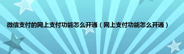 以上就是【微信支付的网上支付功能怎么开通,网上支付功能怎么开通】相关内容。