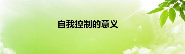 自我控制的意义