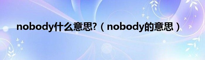 以上就是【nobody什么意思?,nobody的意思】相关内容。