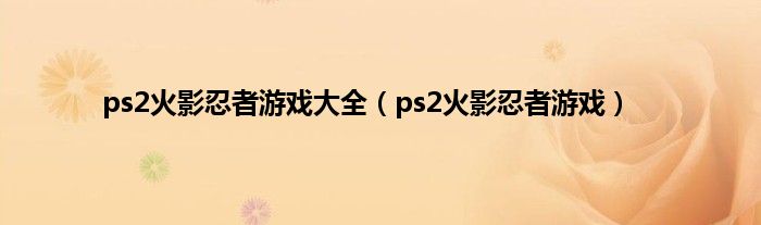 以上就是【ps2火影忍者游戏大全,ps2火影忍者游戏】相关内容。