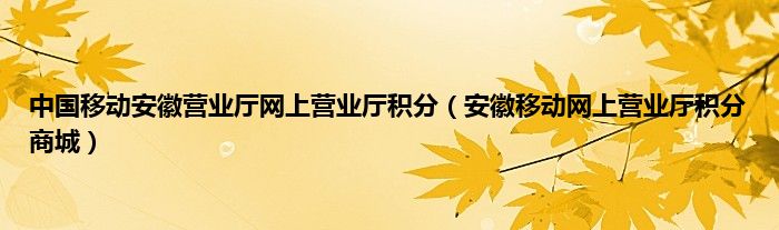 以上就是【中国移动安徽营业厅网上营业厅积分,安徽移动网上营业厅积分商城】相关内容。