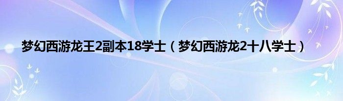 大家好,小问来为大家解答以上问题。梦幻西游龙王2副本18学士,梦幻西游龙2十八学士这个很多人还不知道,现在让我们一起来看看吧!