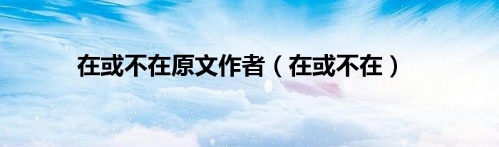 大家好,小问来为大家解答以上问题。在或不在原文作者,在或不在这个很多人还不知道,现在让我们一起来看看吧!
