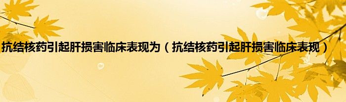 本文,抗结核药引起肝损害临床表现为,抗结核药引起肝损害临床表现到此就分享完毕,希望对大家有所帮助。
