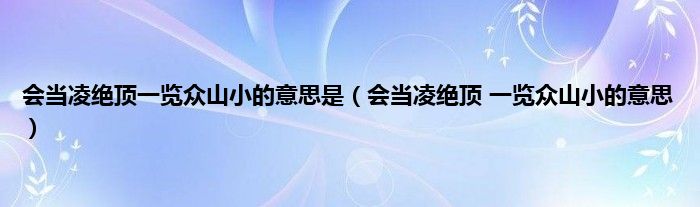 以上就是【会当凌绝顶一览众山小的意思是,会当凌绝顶 一览众山小的意思】相关内容。