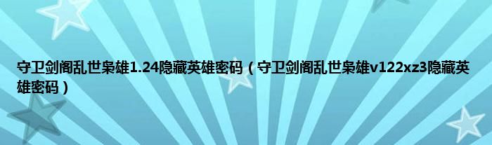 守卫剑阁乱世枭雄1.24隐藏英雄密码(守卫剑阁乱世枭雄v122xz3隐藏英雄密码)