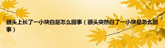 本文,额头上长了一小块白是怎么回事,额头突然白了一小块是怎么回事到此就分享完毕,希望对大家有所帮助。