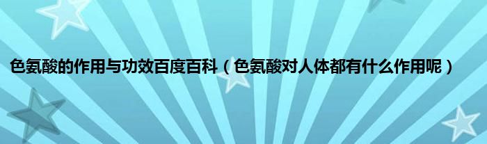大家好,色氨酸的作用与功效百度百科,色氨酸对人体都有什么作用呢很多人还不知道,现在让我们一起来看看吧!