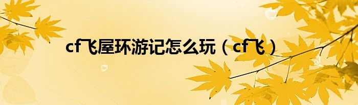以上就是【cf飞屋环游记怎么玩,cf飞】相关内容。