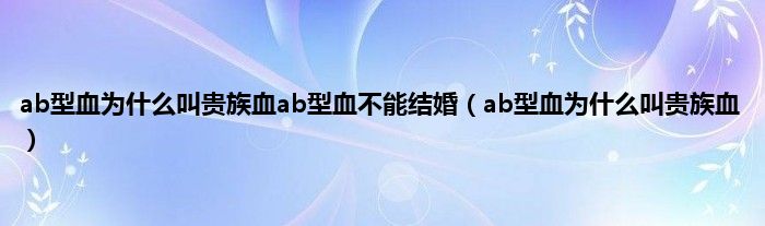 ab型血为什么叫贵族血ab型血不能结婚(ab型血为什么叫贵族血)