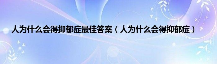 大家好,小问来为大家解答以上问题。人为什么会得抑郁症最佳答案,人为什么会得抑郁症这个很多人还不知道,现在让我们一起来看看吧!