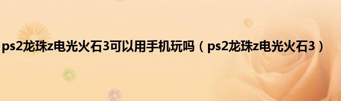 ps2龙珠z电光火石3可以用手机玩吗(ps2龙珠z电光火石3)