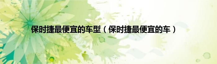 以上就是【保时捷最便宜的车型,保时捷最便宜的车】相关内容。
