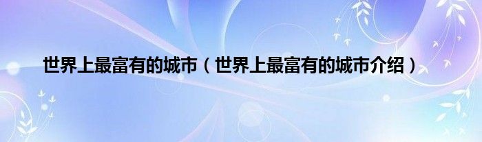 本文,世界上最富有的城市,世界上最富有的城市介绍到此就分享完毕,希望对大家有所帮助。