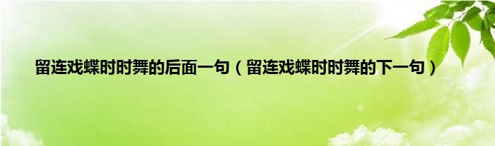 本文,留连戏蝶时时舞的后面一句,留连戏蝶时时舞的下一句到此就分享完毕,希望对大家有所帮助。