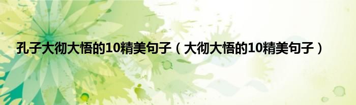 本文,孔子大彻大悟的10精美句子,大彻大悟的10精美句子到此就分享完毕,希望对大家有所帮助。