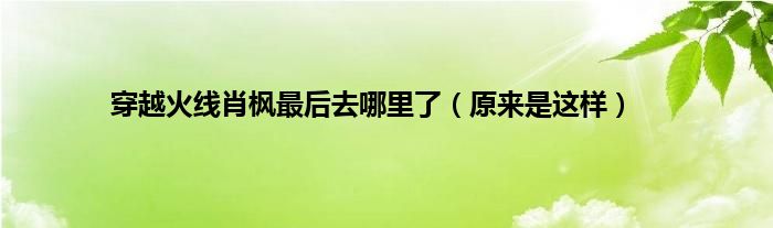 本文,穿越火线肖枫最后去哪里了,原来是这样到此就分享完毕,希望对大家有所帮助。