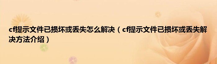 本文,cf提示文件已损坏或丢失怎么解决,cf提示文件已损坏或丢失解决方法介绍到此就分享完毕,希望对大家有所帮助。