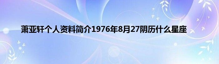 大家好,萧亚轩个人资料简介1976年8月27阴历什么星座很多人还不知道,现在让我们一起来看看吧!