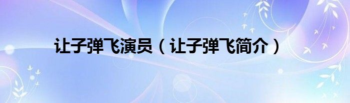 本文,让子弹飞演员,让子弹飞简介到此就分享完毕,希望对大家有所帮助。