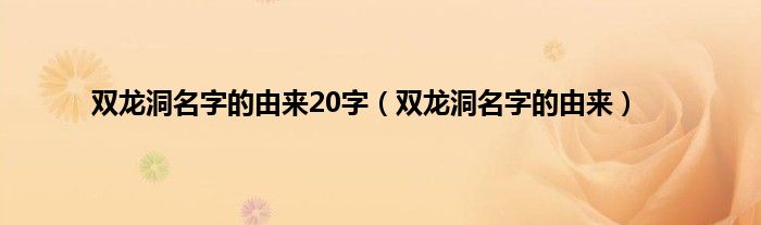 本文,双龙洞名字的由来20字,双龙洞名字的由来到此就分享完毕,希望对大家有所帮助。