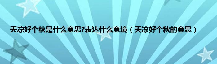 本文,天凉好个秋是什么意思?表达什么意境,天凉好个秋的意思到此就分享完毕,希望对大家有所帮助。