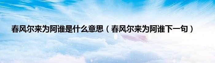 大家好,春风尔来为阿谁是什么意思,春风尔来为阿谁下一句很多人还不知道,现在让我们一起来看看吧!