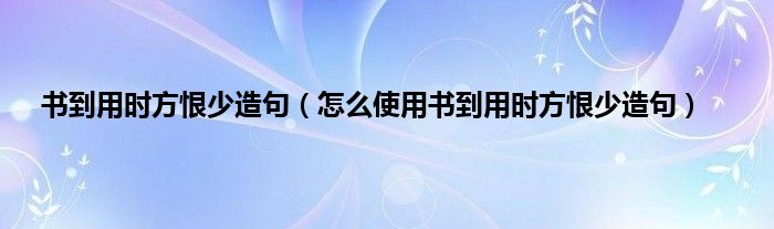 本文,书到用时方恨少造句,怎么使用书到用时方恨少造句到此就分享完毕,希望对大家有所帮助。